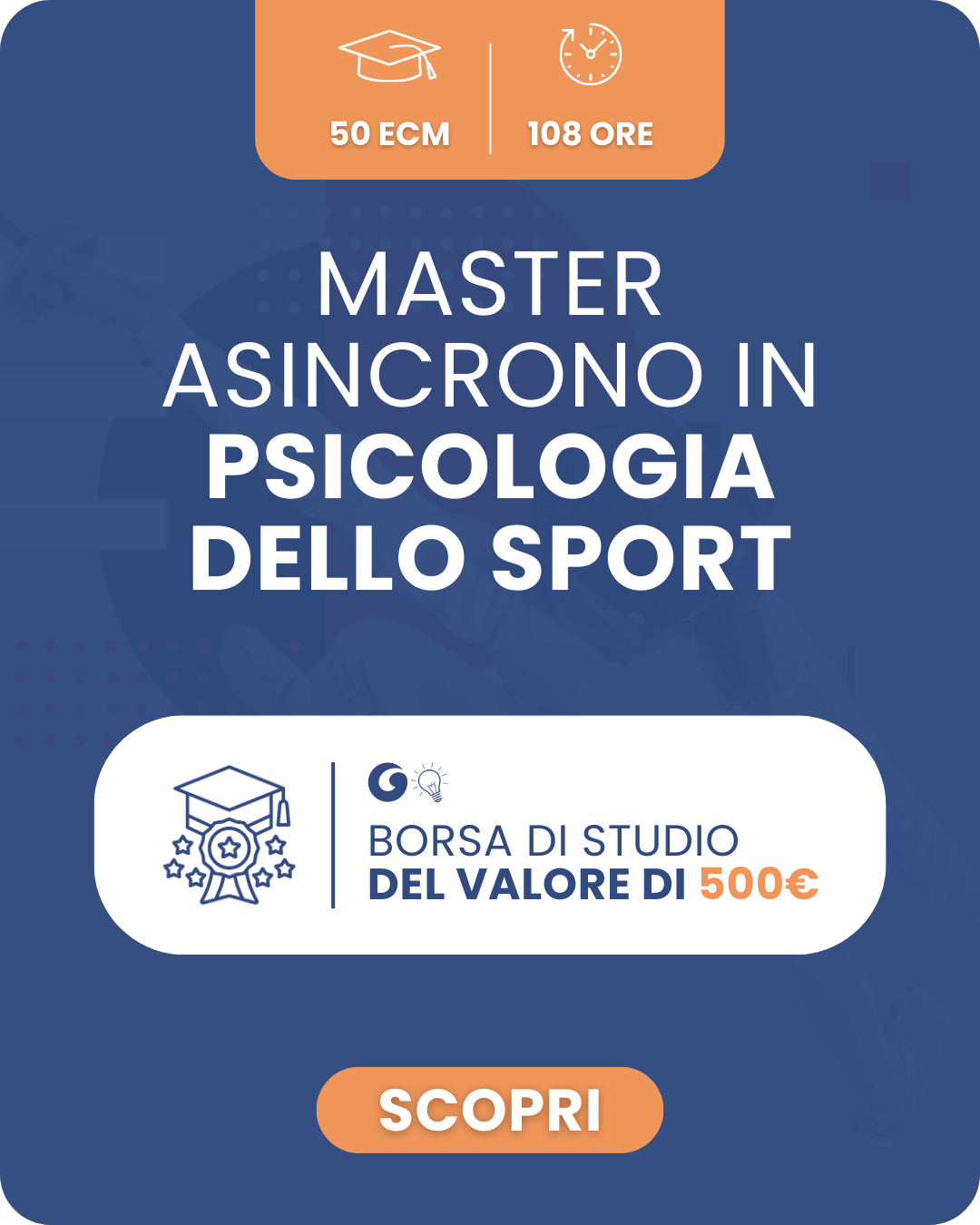 Master asincrono in psicologia dello sport -> il master è rivolto a psicologi, psicoterapeuti, medici chirurghi con qualsiasi specializzazione. Il master è aperto anche a studenti in psicologia, iscritti alla magistrale, previa valutazione del curriculum formativo da parte della direzione scientifica.