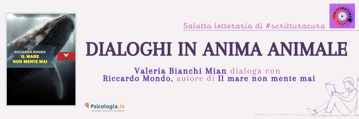 A partire dal romanzo dello psicologo analista Riccardo Mondo, dal titolo "Il mare non mente mai", Editore A & B, 2023 - e da "Il corpo crudo", Edizioni del Capricorno, 2023, di Valeria Bianchi Mian, e da "Bestie, femminile animale", Vita Activa Nuova APS, 2023, l'incontro si propone come un simposio di voci animali e richiami bestiali, di canti lontani e ululati che trovano ascolto e cura nell'ecologia della psiche.