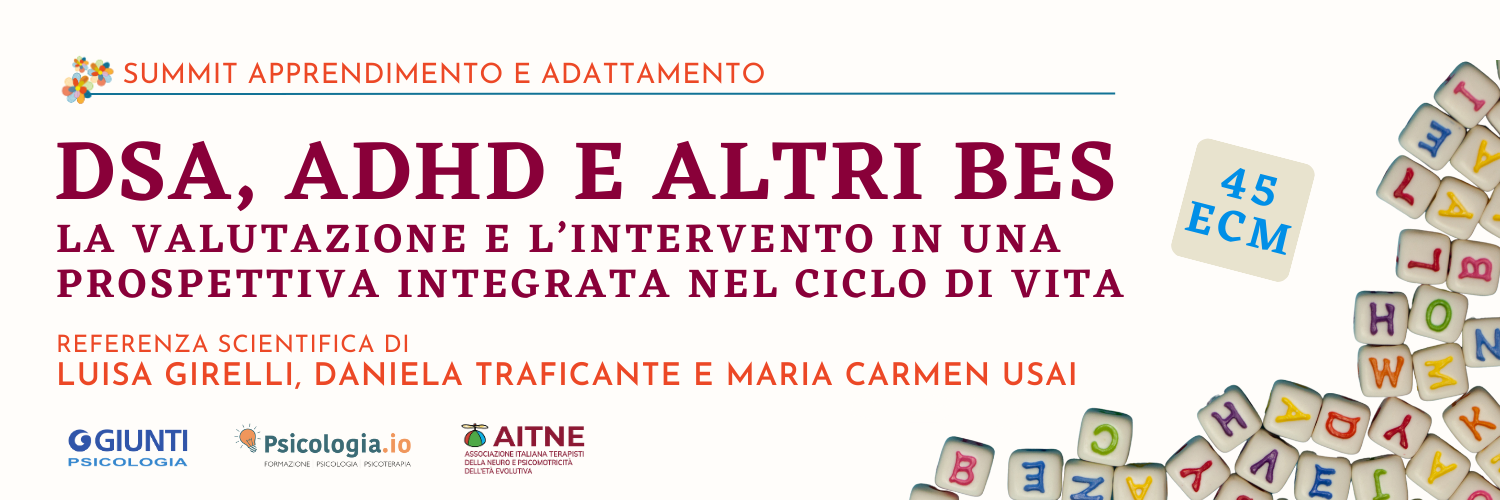 Il convegno ha l’obiettivo di approfondire e discutere gli aggiornamenti su alcune condizioni che possono influenzare in modo rilevante i processi di apprendimento e adattamento nel corso dello sviluppo, con importanti implicazioni anche per l’età adulta: i disturbi specifici di apprendimento (DSA), il disturbo da deficit di attenzione e iperattività (ADHD) e altre condizioni che possono indurre particolari difficoltà in diversi contesti e che, insieme a DSA e ADHD, vengono riconosciute come Bisogni Educativi Speciali (BES)
