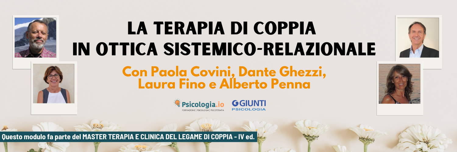 In ottica relazionale la presa in carico delle coppie ha acquisito autonomia rispetto alla terapia familiare. In questo ambito, il corso che presentiamo intende affrontare gli interventi di cura nel disagio di coppia, sia attraverso una riflessione teorica, sia con la presentazione di casi clinici e di attivazioni.